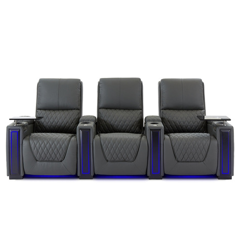 เบาะนั่งไฟฟ้าสำหรับโซฟาหนังที่นั่งในโรงภาพยนตร์ที่บ้านปรับเอนได้มีแถบไฟ LED สีฟ้าและ USB